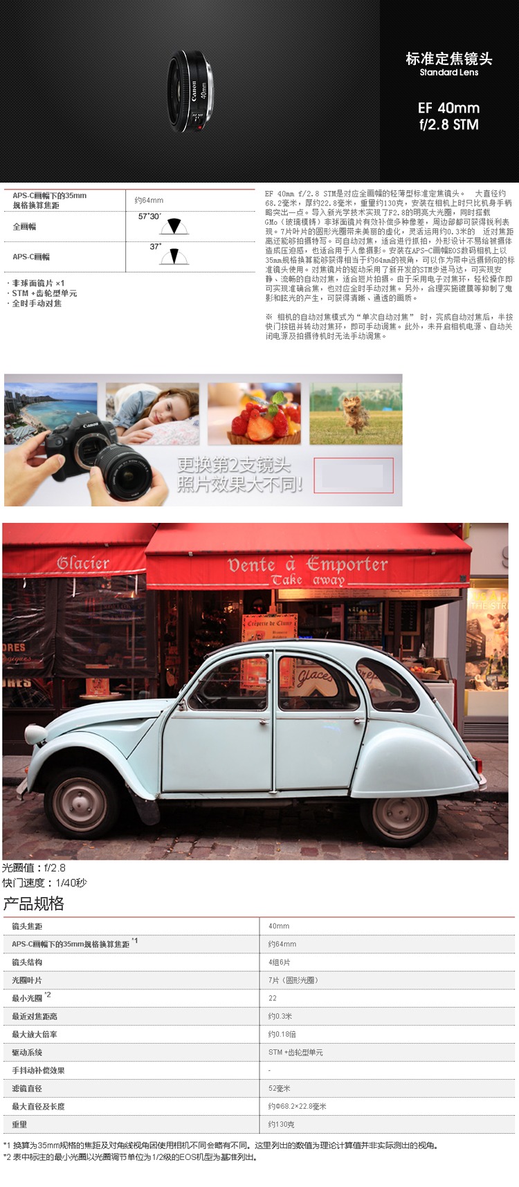 佳能/Canon EF 40mm f/2.8 STM 单反镜头