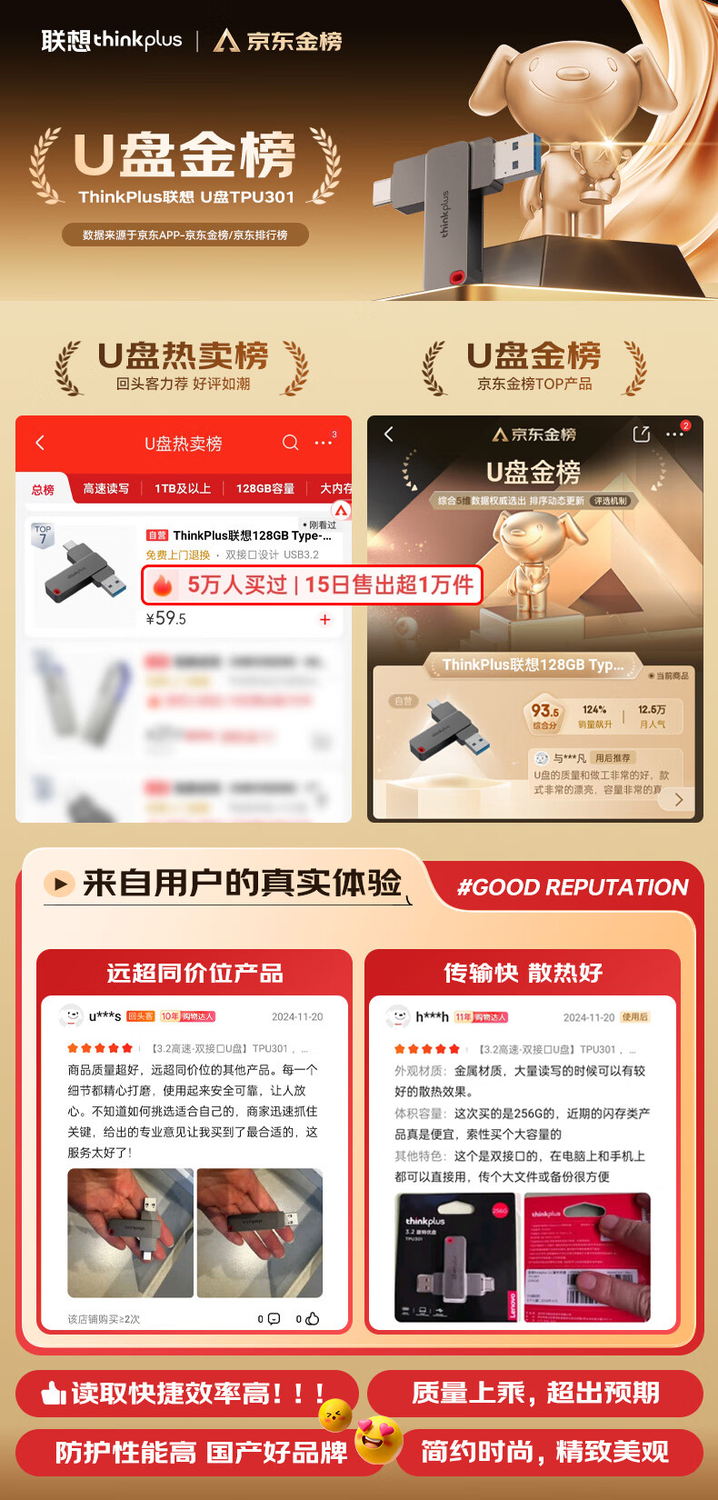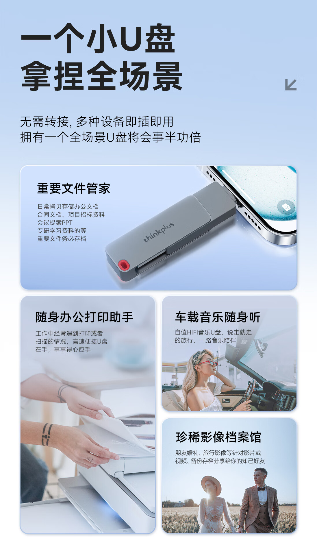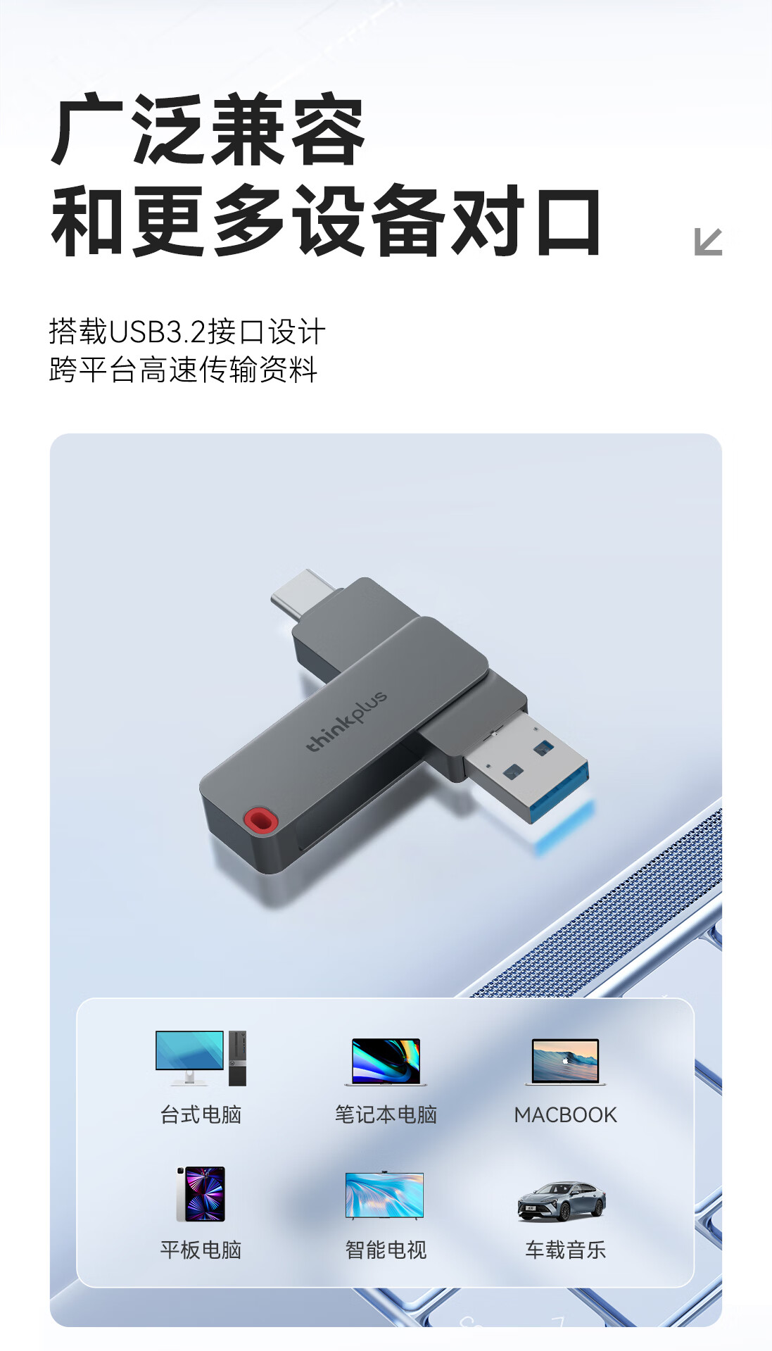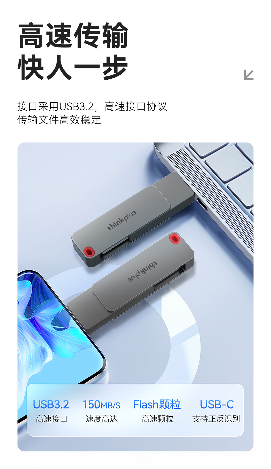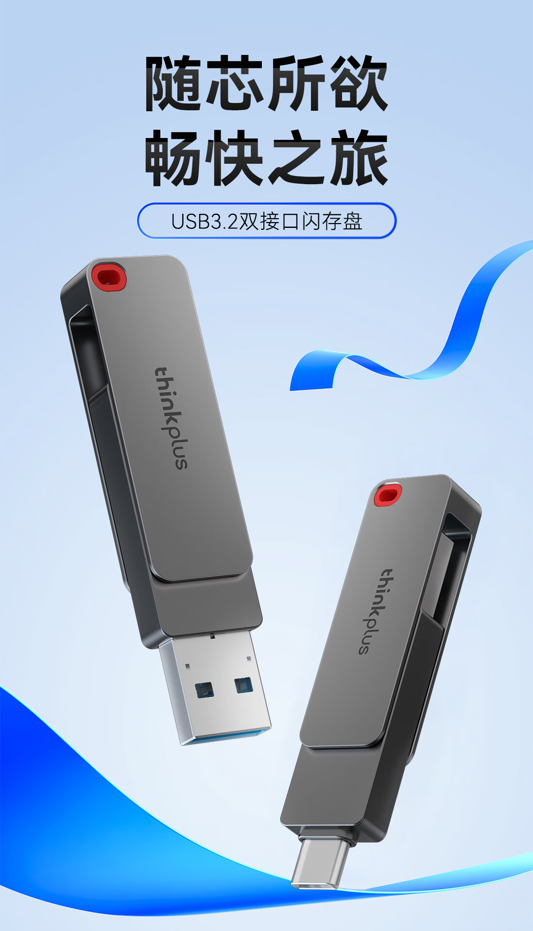 THINKPLUS TSU303 ThinkPlus联想32GB Type-C USB3.2 双接口U盘手机电脑通用大容量 办公商务U盘TPU301系列
