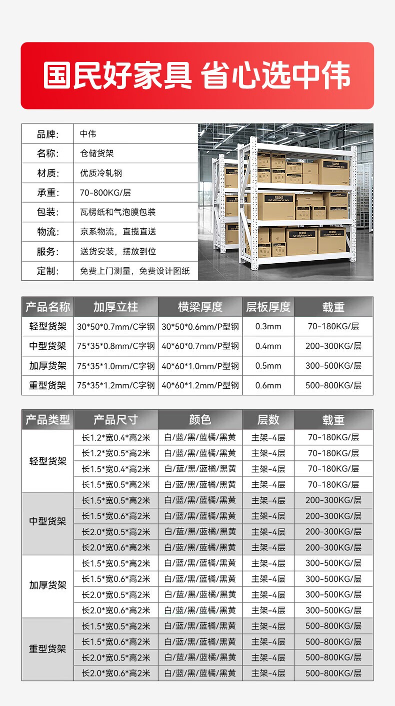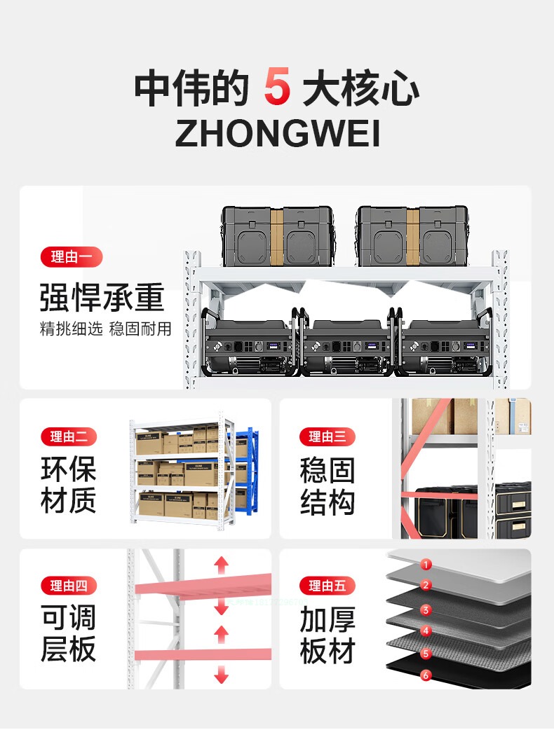 中伟 中伟 中伟(ZHONGWEI)仓储货架仓库多层储物架器材架超市库房货架200*60*200cm/260KG