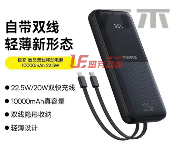 倍思自带线10000毫安 双线充电宝